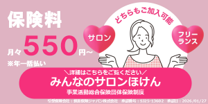 理美容室・エステ・ネイル・リラクゼーションなどのサロンワーカーを対象とした保険です。